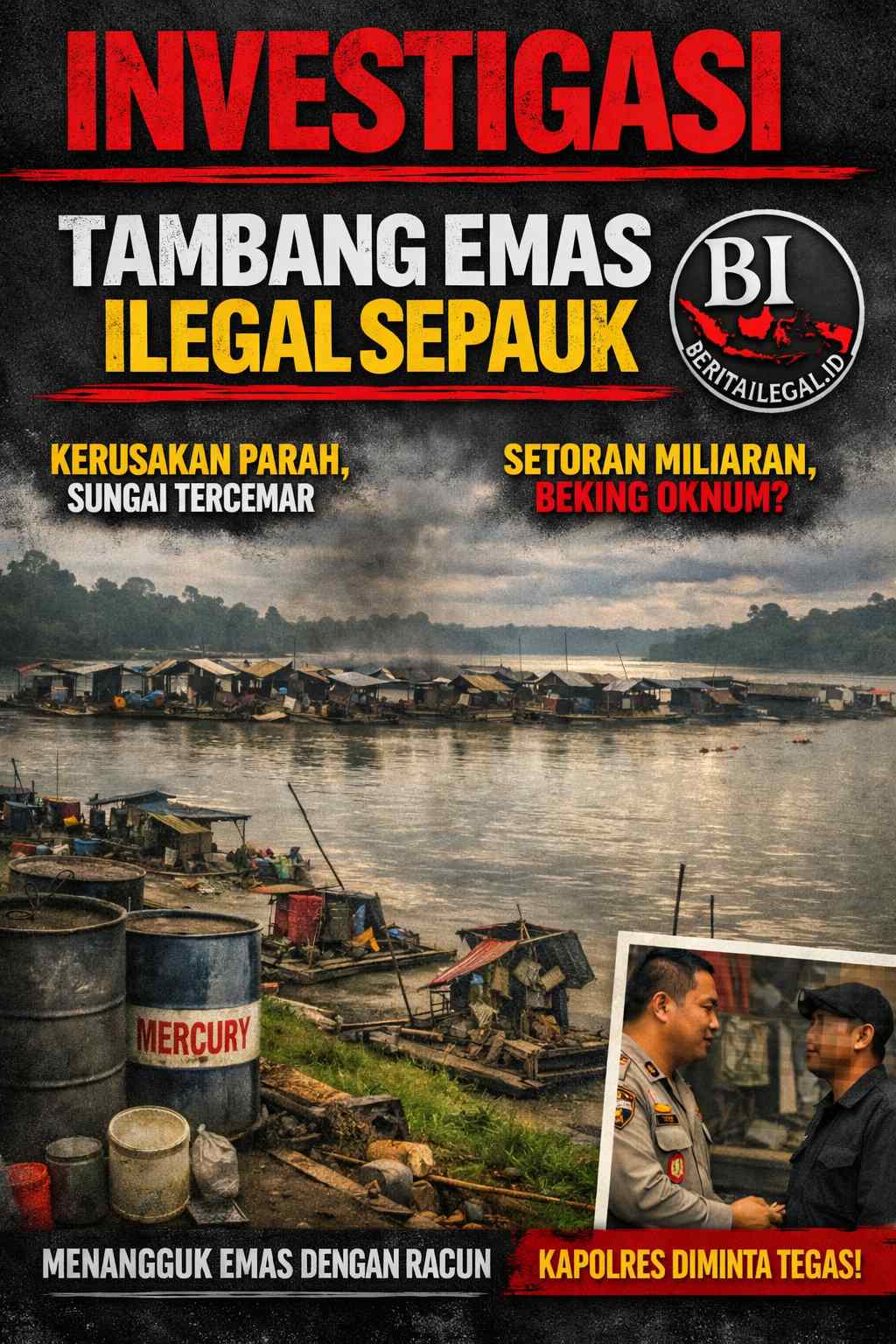 Kegiatan penambangan emas ilegal tersebut tidak hanya merusak ekosistem sungai, tetapi juga berpotensi membahayakan kesehatan masyarakat yang tinggal di sekitar wilayah aliran sungai.