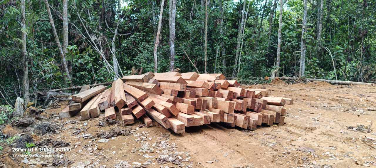 Beritailegal.id, Ketapang, Kalimantan Barat – Temuan tumpukan kayu kelas dua berbagai ukuran ditemukan di wilayah Simpang Empat Kumai, Kecamatan Sungai Laur, Kabupaten Ketapang, pada Minggu (7/9/2025). Penemuan tersebut memunculkan dugaan kuat adanya praktik pembalakan liar yang telah berlangsung cukup lama di kawasan itu.