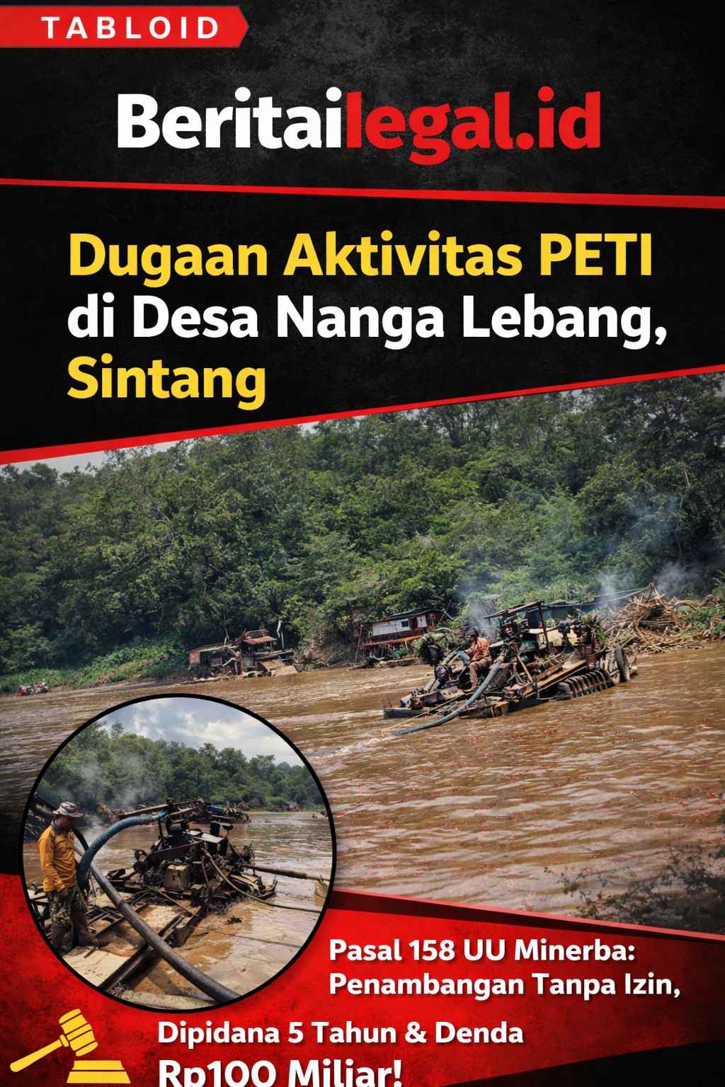 Beritailegal.id, SINTANG – Laporan masyarakat kembali mengemuka terkait dugaan aktivitas Penambangan Emas Tanpa Izin (PETI) di Desa Nanga Lebang, Kecamatan Kelam Permai, Kabupaten Sintang.